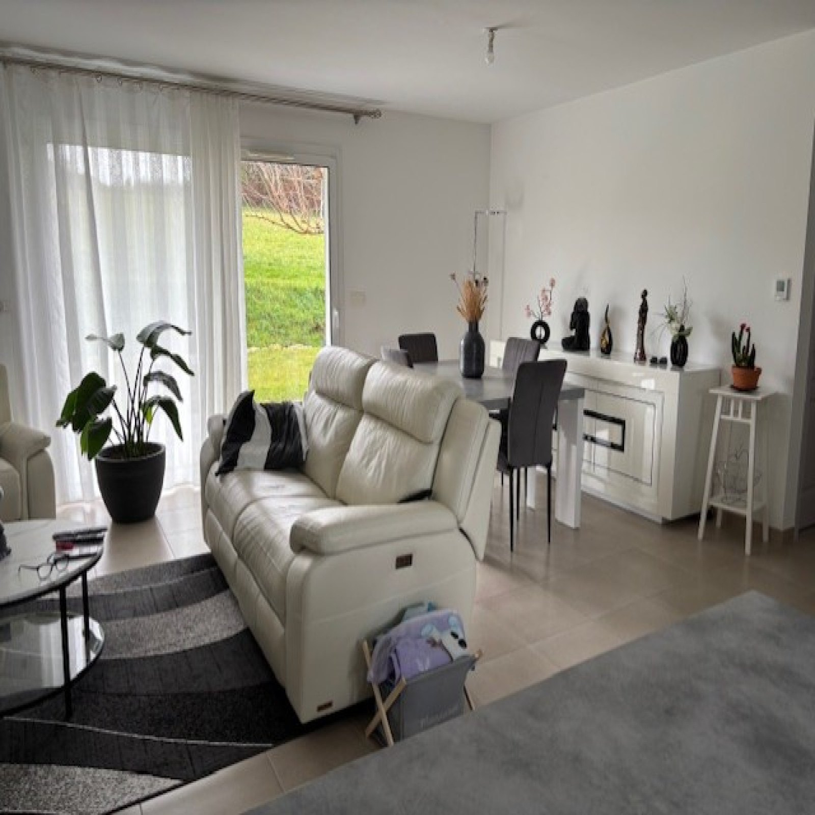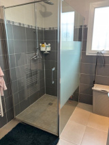 Mitoyenne d'un côté, elle se compose d'un salon séjour donnant sur une terrasse extérieure, d'une cuisine équipée, d'un cellier, de trois chambres, d'une salle d'eau et d'un wc.