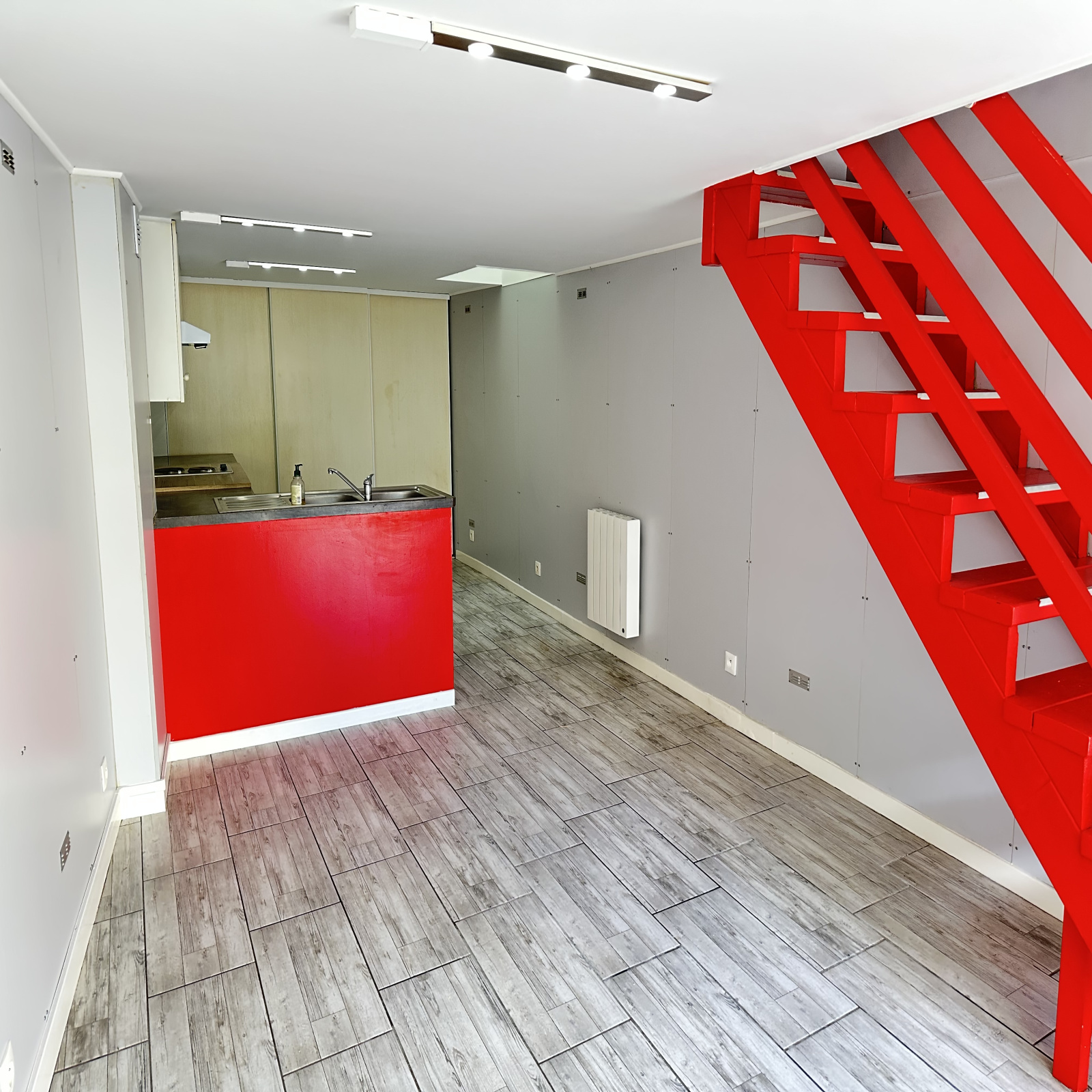 Se composant au rez de chaussée d'un salon séjour avec un coin cuisine et de nombreux rangements, vous trouverez à l'étage deux chambres, une salle d'eau et un WC.
