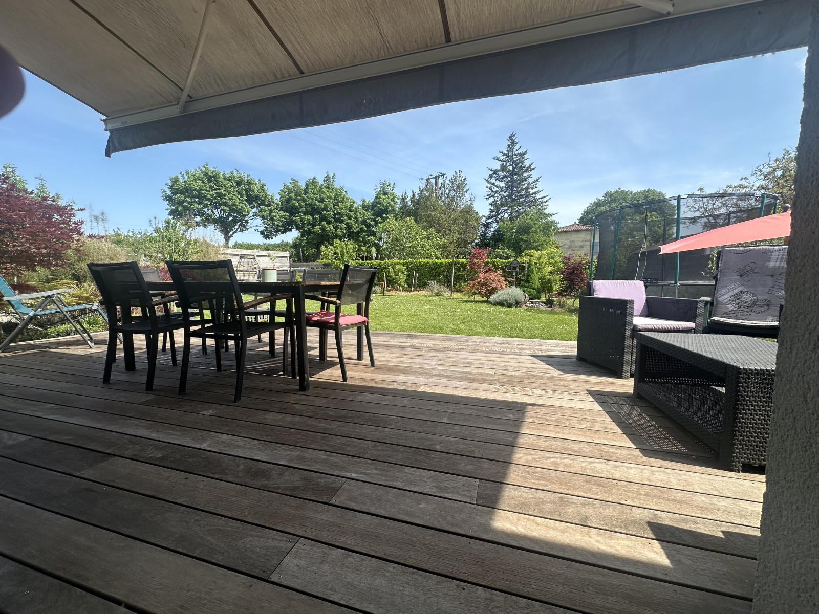 À l’extérieur, vous serez séduit par un beau terrain arboré d’environ 998 m², idéal pour profiter de moments en famille ou entre amis.